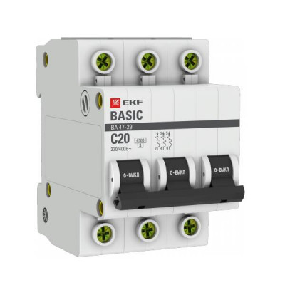 EKF Basic ВА 47-29 Автоматический выключатель (С) 3P 20А 4,5кА отзывы