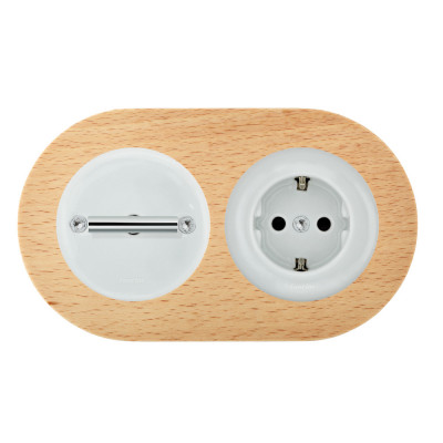 Fontini Блок на 2 поста, выключатель с розеток 2к+з, цвет белый фарфор, рамка - дерево бук отзывы