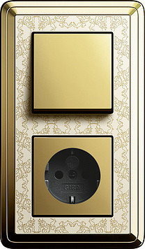 Gira Выключатель 1-клавишный с розеткой 2к+з, Латунь-Кремовый, серия Classix Art отзывы