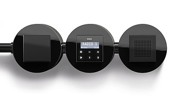 Gira Блок на 3 поста: выключатель 1 клавишный + радиоприемник с динамиком, матовый антрацит - черное стекло, серия Studio отзывы