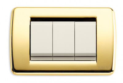 Выключатель 3-х клавишный, вставка белый, рамка - блестящее золото, серия Idea отзывы
